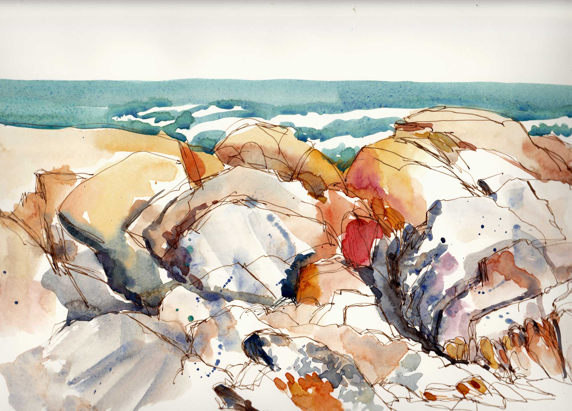 Drawing is my way of connecting to the world, of understanding what I see, a way of being completely in the moment, a meditation. Drawing and sketching have become an integral part of my art practice. Sometimes the sketch is an end in itself a record of a time and place and sometimes they become the foundation of a series is of paintings. Working in ink and watercolour is a special delight; a way to be spontaneous and experimental; to embrace the imperfect line, the paint bloom and the accidental splash.
